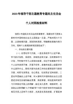 学习贯彻2023年主题教育专题民主生活会开展情况总结报告按照上级统一部署和《XXX学习贯彻习近平新时代中国特色社会主义思想主题教育专题民主生活会实施方案》安排,经过充分准备,XXX党支部于X月X日召开了学习贯彻习近平新时代中国特色社会主义思想主题教育专题民主生活会,上级单位领导XX同志等到会指导。按照会议要求,与会支部委员分别就学习指定材料谈感悟和收获,深入开展谈心谈话,认真对照主题教育专题民主生活会方案明确的六个方面的突出问题进行检视剖析,开展批评与自我批评,做到了把专题民主生活会作为“学思想、强党性、重实践、建新功”的一次政治体检,检验了主题教育成效,现将有关情况报告如下:一、周密策划部署...