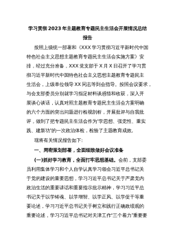 学习贯彻2023年主题教育专题民主生活会开展情况总结报告