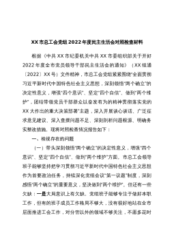 2022年民主生活会六个方面个人对照检查材料根据省委统一部署安排和省纪委、省委组织部《关于认真开好2022年度民主生活会的通知》精神,本人广泛听取各方意见,对照6个方面,深入查找突出问题,深刻对照剖析,明确今后的努力方向和整改措施。现将有关对照检查情况汇报如下:一、对照检查找出的问题(一)带头深刻领悟“两个确立”的决定性意义,增强“四个意识”、坚定“四个自信”、做到“两个维护”方面一是政治站位有待提升。平时想问题、作决策、抓工作,习惯性从地方发展需要和客观实际出发,从政治高度认识和把握上级决策部署相对不足,自觉站位全国、全省发展大局来思考、谋划、推动工作还有欠缺,存在地方主义、本位主义倾向,导...