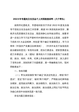 2022年民主生活会六个方面个人对照检查材料范文