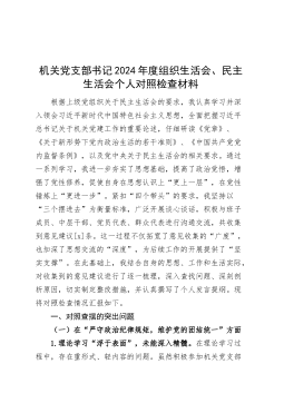 机关党支部书记2024年度组织生活会、民主生活会个人对照检查材料(四个带头,纪律规矩团结统一、党性纪律作风、清正廉洁、从严治党,检视剖析,发言提纲)20250305