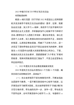 2023年银行行长“六个带头”民主生活会对照检查材料(含上年度整改落实情况)