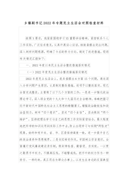 乡镇党委领导班子2021年专题民主生活会对照检查材料(2篇)乡镇党委领导班子2021年专题民主生活会对照检查材料1按照xx市纪委、市委组织部关于召开以巡视整改为主题的民主生活会统一部署和要求,xx镇召开2021年度民主生活会,会前重温了习近平新时代中国特色社会主义思想和党的十九大报告,认真学习了总书记视察xx、视察xx重要讲话精神及对xx工作的一系列重要指示批示精神,进一步深入学习了省、xx市委、xx市委关于中央巡视反馈意见整改落实工作的部署要求。按照本次民主生活会的主题,对照上级巡视反馈意见及整改落实工作要求,严肃开展谈心谈话xx余次,广泛征求意见建议xx条,认真查摆问题,深刻查找班子存在的...