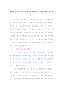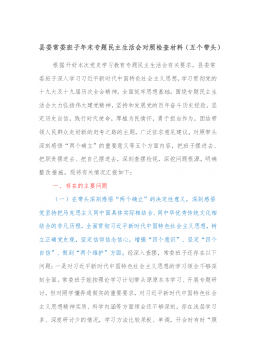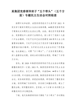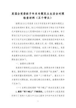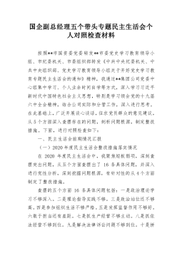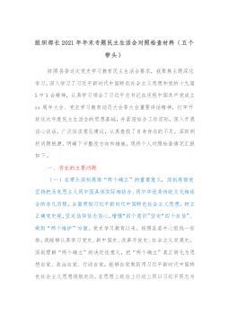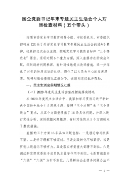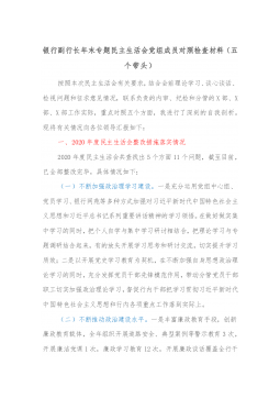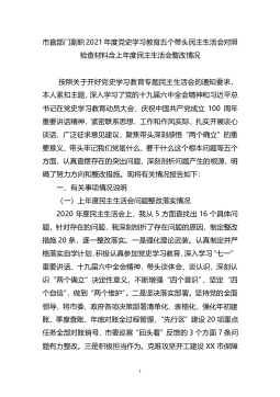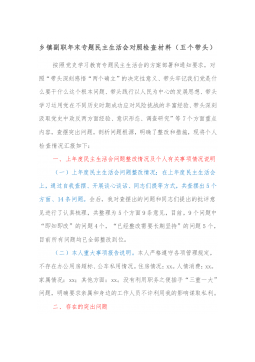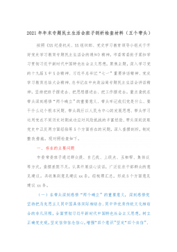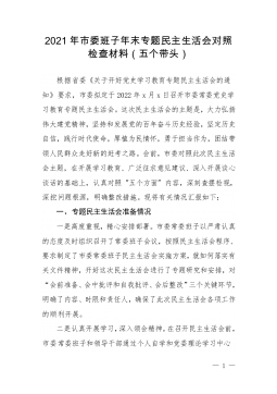 1市直部门副职2021年度党史学习教育五个带头民主生活会对照检查材料含上年度民主生活会整改情况按照关于开好党史学习教育专题民主生活会的通知要求,本人紧扣主题,深入学习了党的十九届六中全会精神和习近平总书记在党史学习教育动员大会、庆祝中国共产党成立100周年重要讲话精神,紧密联系思想、工作和作风实际,扎实开展谈心谈话、广泛征求意见建议,聚焦带头深刻感悟“两个确立”的重要意义、带头牢记我们党是什么、要干什么这个根本问题等五个方面,认真查摆存在的突出问题,深刻剖析问题产生的根源,明确了努力方向和整改措施。现将有关情况报告如下:一、有关事项情况说明(一)上年度民主生活会问题整改落实情况2020年度民主...