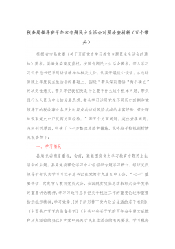 市直部门副职五个带头民主生活会对照检查材料(含上年度民主生活会整改情况)
