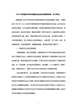 乡镇党委领导班子2021年专题民主生活会对照检查材料(两篇)篇一按照xx市纪委、市委组织部关于召开以巡视整改为主题的民主生活会统一部署和要求,xx镇召开2021年度民主生活会,会前重温了习近平新时代中国特色社会主义思想和党的十九大报告,认真学习了总书记视察xx、视察xx重要讲话精神及对xx工作的一系列重要指示批示精神,进一步深入学习了省、xx市委、xx市委关于中央巡视反馈意见整改落实工作的部署要求。按照本次民主生活会的主题,对照上级巡视反馈意见及整改落实工作要求,严肃开展谈心谈话xx余次,广泛征求意见建议xx条,认真查摆问题,深刻查找班子存在的问题及不足,深刻剖析问题产生原因,深挖症结根源,明...