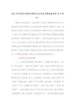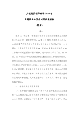 (2篇)乡镇党委领导班子2021年专题民主生活会对照检查材料