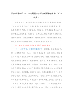 国企党委统战委员下属子公司党支部书记2021年专题民主生活会对照检查材料(五个带头)