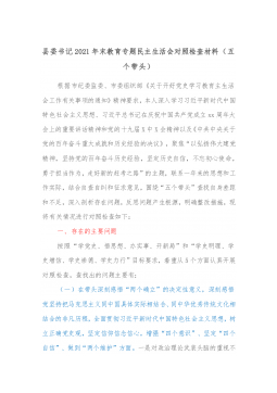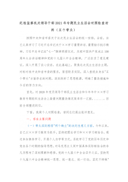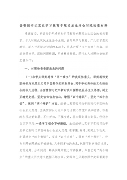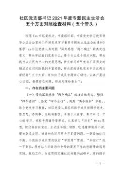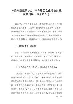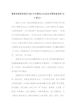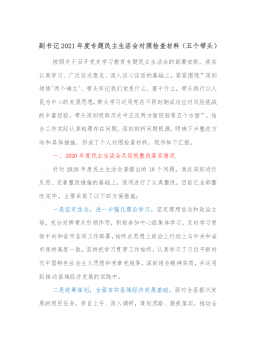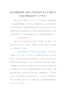 国企党委统战委员下属子公司党支部书记2021年专题民主生活会对照检查材料(五个带头)根据xx组发〔2022〕1号文件,关于开好党史学习教育专题民主生活会的部署安排,作为集团公司党委委员和xx市自来水有限责任公司党支部书记,我对照集团党委党史学习教育民主生活会方案,对照要求逐项深入查摆存在的突出问题,深刻剖析问题根源,并针对存在的问题和不足,提出改进措施。现将个人检视剖析情况报告如下:一、存在的主要问题根据此次民主生活会主题,对照“学史明理、学史增信、学史崇德、学史力行”和“学党史、悟思想、办实事、开新局”的目标要求,主要存在以下问题:(一)带头深刻感悟“两个确立”的决定性意义,等方面存在的问题...