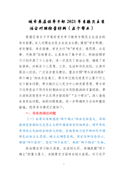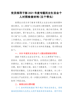 党员领导干部2021年度专题民主生活会个人对照检查材料(五个带头).Doc