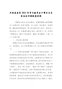 ·12021年度党员干部年末专题民主生活会个人对照检查检视剖析材料(五个带头)根据区纪委监委、区委组织部《关于开好党史学习教育主生活会工作有关事项的通知》精神要求,本人深入学习习近平总书记在庆祝中国共产党成立xx周年大会上的重要讲话精神和党的十九届精神以及《中共中央关于党的绕大方弘扬伟大建党精神,坚持和发展党的百年奋斗历史经验,坚定历史自信,践行时代使命,厚植为民的主题,联系当作为,团结带领人民群众走好新的赶考之路的主题,联系一年来的思想和工作实际,结合自查自纠和征求意见,围绕”五个带头”查找自身差距和不足,深入剖析了存在的问题,反思了问题产生的根源,明确了整改措施,现将有关情况进行对照检查,...