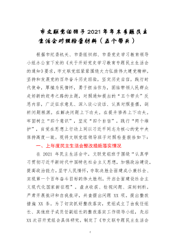 2021年度党员干部年末专题民主生活会个人对照检查检视剖析材料(五个带头)