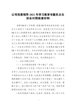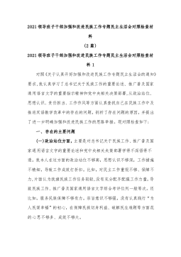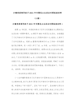 (2篇)乡镇党委领导班子2021年专题民主生活会对照检查材料