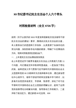 XX市纪委书记民主生活会个人六个带头对照检查材料(全文4726字)