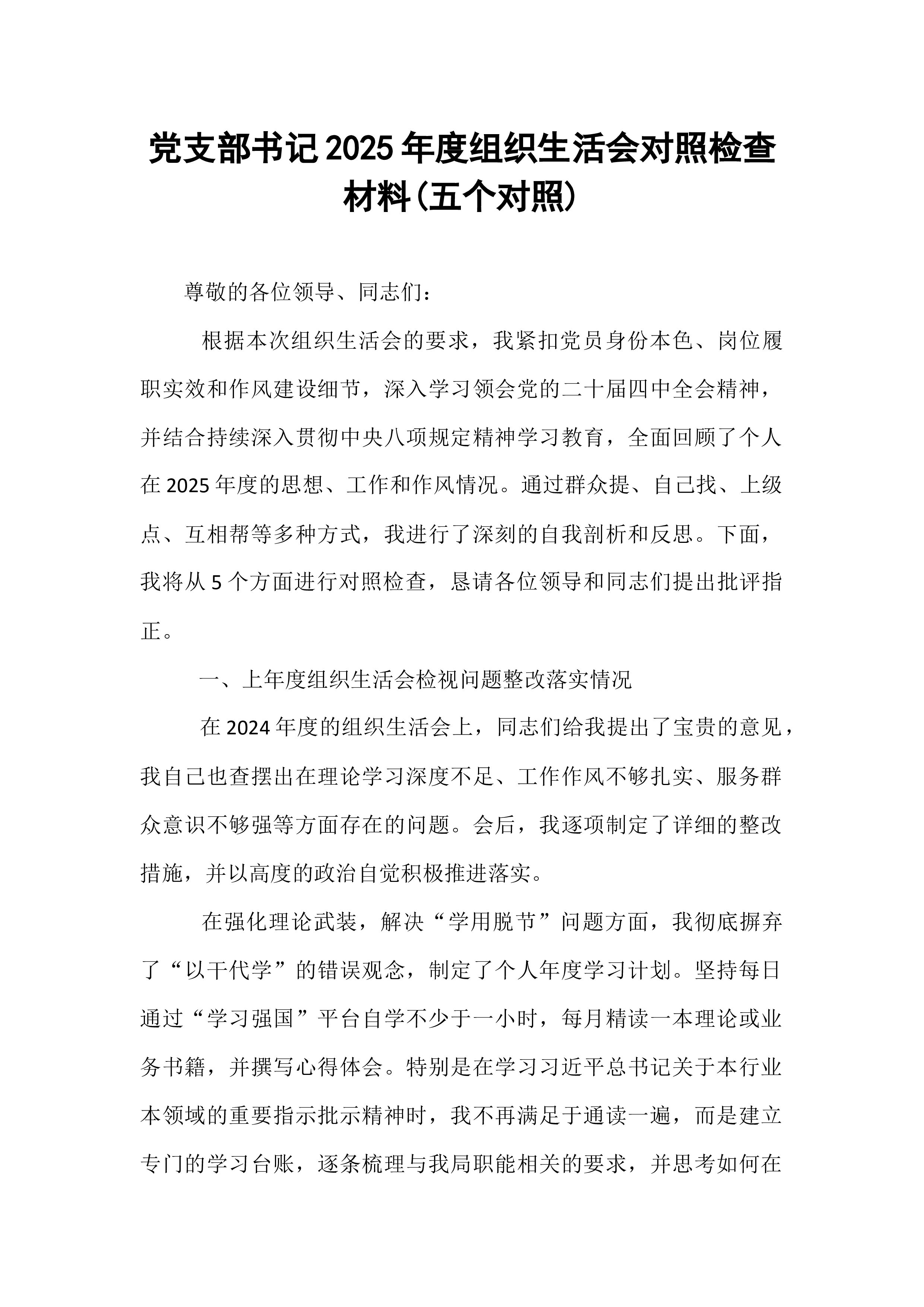 乡2025年度民主生活会整改落实方案