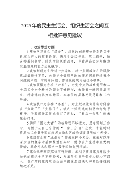 45条2024年度民主生活会、组织生活会批评与自我批评意见建议个人问题清单20250321