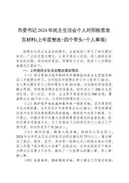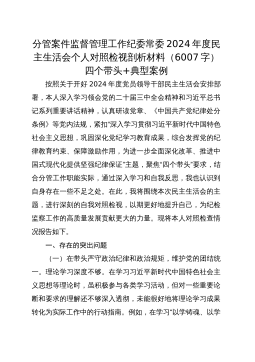 乡镇街道党委领导班子2024年度民主生活会对照检查材料(含案例剖析,四个带头,纪律规矩团结统一、党性纪律作风、清正廉洁、从严治党,检视剖析,发言提纲)20250312