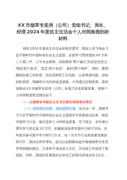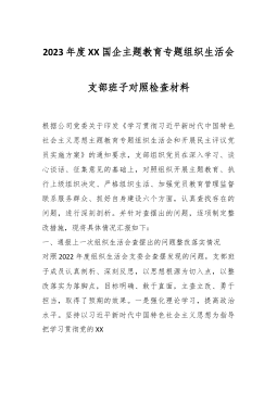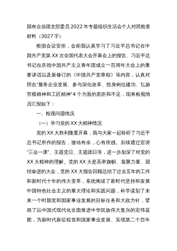 国企领导干部2023年主题教育专题民主生活会个人对照检查材料根据这次专题民主生活会的要求,我围绕“以学铸魂、以学增智、以学正风、以学促干”等方面进行了一次深刻的思想淬炼和灵魂洗礼。紧扣会议主题,结合个人思想、学习和工作实际,查摆出自身存在的主要问题,现对照检查如下:一、存在的差距和不足(一)理论学习方面。一是在学习认识上,自觉意识不足,主动性还不够高。虽然专题学习安排比较紧密、抓得比较严,我个人也比较重视理论学习,但很多时候是公司要求学什么就学什么,被动的参加理论学习,缺乏学习的主动性和自觉性。二是在学习方法上,形式手段单一,缺乏吸引性。学习形式的创新上探索得不够,个人学习形式还是以听、读、记...