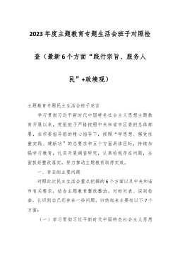 党员干部2023年度专题组织生活会个人对照检查材料范文汇编(一)(4篇)目录1.主题教育民主生活会个人对照剖析材料2.普通党员2023年度专题组织生活会个人对照检查材料3.组织部长2023年专题民主生活会对照检查材料4.区委外事办2023年度主题教育专题民主生活会个人对照检查材料(新6个对照方面)主题教育民主生活会个人对照剖析材料根据上级组织关于在主题教育中开好专题民主生活会的有关文件精神,本人紧扣学习贯彻习近平新时代中国特色社会主义思想主题,聚焦“学思想、强党性、重实践、建新功”的总要求,深刻领悟以学铸魂、以学增智、以学正风以学促干的丰富内涵和实践要求。在深化理论学习、谈心谈话的基础上,对照...
