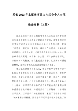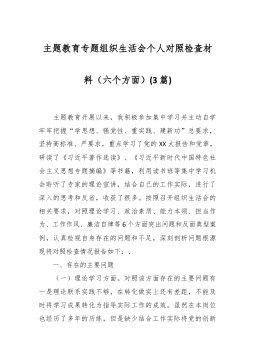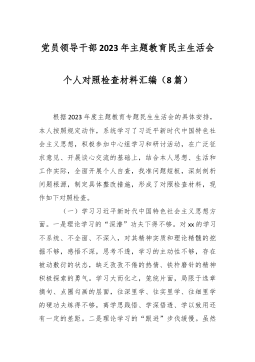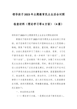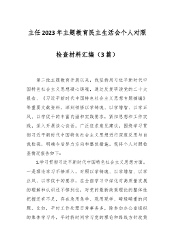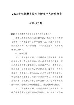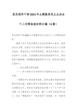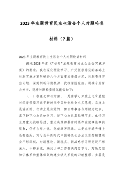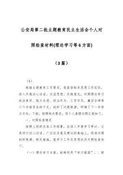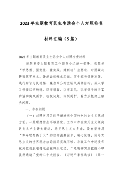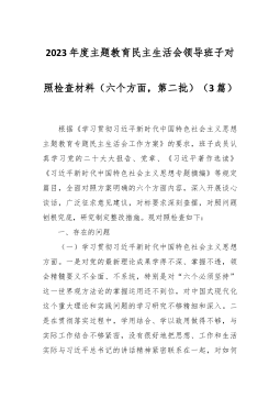 2023年度第二批主题教育民主生活会个人对照检查材料(践行宗旨等新对照6方面)(4篇) 2023年度第二批主题教育民主生活会个人对照检查材料(1) 按照xx召开第二批主题教育民主生活会的相关要求,我围绕本次主题教育专题民主生活会的议题,认真学习习近平总书记在中央政治局专题民主生活会上的重要讲话精精,深化对习近平总书记关于党建的重要观点,关于严肃党内政治生活的重要发言和重要指示批示精神,关于以学铸魂,以学增智,以学正风,以学促干重要阐释的理解,认真研读党章、新形势下党内政治生活的若干准则等党内法规,深度进行谈心谈话,广纳各方意见和建议,围绕“学习贯彻习近平新时代中国特色社会主义思想,维护党中...