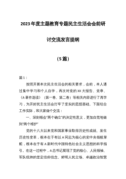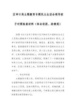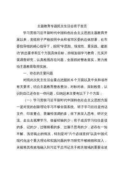 主题教育专题民主生活会班子发言学习贯彻习近平新时代中国特色社会主义思想主题教育开展以来,党组班子严格按照中央和省市区委的总体部署,在市委指导组的精心指导下,按照“学思想、强党性、重实践、建新功”的总要求和五个方面具体目标,持续加强学习教育,扎实开展调查研究,认真检视存在问题,全面抓好整改落实,努力推动主题教育取得实效。一、存在的主要问题对照此次民主生活会重点把握的6个方面以及中央和省市有关要求,结合主题教育整改整治,对标对表、深刻检查,认识到自己还存在一些问题,归纳起来主要有以下7个方面:(一)学习贯彻习近平新时代中国特色社会主义思想方面一是对党的创新理论学习不够全面系统。班子学习往往是传达文...