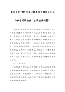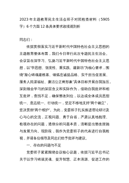 2023年度主题教育专题生活会班子对照检查6300字(最新6个方面“践行宗旨、服务人民”+政绩观)