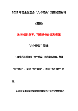 2023年民主生活会整改措施汇编(坚持以人民为中心的发展思想方面存在问题、原因分析)(全文54566字)1.带头坚持以人民为中心的发展思想,推动改革发展稳定方面28个2.2023年民主生活会六个带头存在问题原因剖析分析30条3.2023年民主生活会六个带头存在问题努力方向整改措施30条带头坚持以人民为中心的发展思想,推动改革发展稳定方面28个1、“是否带头坚持以人民为中心的发展思想,推动改革发展稳定。是否完整准确全面贯彻新发展理念,统筹推进“五位一体”总体布局、协调推进“四个全面”战略布局,紧紧抓住解决不平衡不充分的发展问题,补短板.强弱项、固底板、扬优势,推动经济社会持续健康发展。是否在发展...
