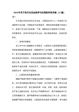 集团领导班子2023年度民主生活会个人发言提纲5篇集团领导班子2023年度民主生活会个人发言提纲篇1X年以来,市城投集团按照市委、市政府的部署,认真学习贯彻十九大精神、新时代中国特色社会主义思想,牢固树立“四个意识”,推动企业稳步发展。现将具体情况汇报如下:一、企业概况及主要工作成效。截至目前,集团注册资本X.X亿元,主体信用评级XA+,总资产X亿元,净资产X亿元,资产负债率X%。现有职工X人,其中经营层X人,中层干部X人。集团下设综合管理部、党群工作部、纪检监察室、财务审计部、资本运营部、工程管理部(总工办);拥有X等X家全资子公司,X等X家控股子公司,参股X等X家公司。(一)主要指标完成情...