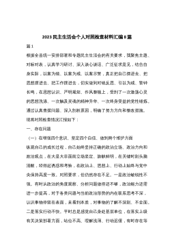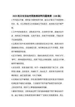 “六个带头”民主生活会问题查摆写作素材汇编(5.4万字,386条,仅供参考,请勿对号入座)围绕“六个带头”,从多个民主生活会发言材料中,分门别类梳理了一下查摆的问题,供大家学习借鉴。每个带头都进行了归类,归类可能不一定精准,六个带头查摆的问题也会有类型重复的情况,大家在写民主生活会过程中,要尽量在前三个类别中去写。本次整理5.4万字,386条问题。一、在带头深刻感悟“两个确立”的决定性意义,增强“四个意识”、坚定“四个自信”、做到“两个维护”方面(一)关键词“思想认识”---主要是思想认识方面的问题(16条)1.对“两个确立”的认识还需加强,对其重大历史意义、丰富政治内涵、深厚实践要求缺乏系统...