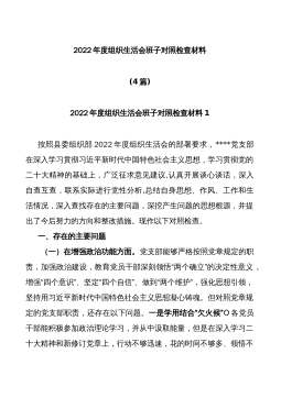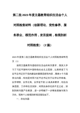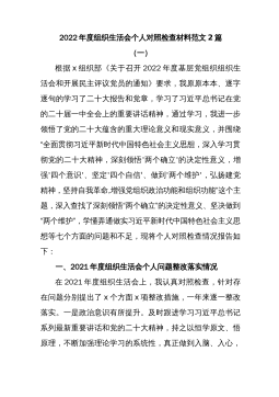 2022年度组织生活会个人对照检查材料范文2篇(一)根据x组织部《关于召开2022年度基层党组织组织生活会和开展民主评议党员的通知》要求,我原原本本、逐字逐句的学习了二十大报告和党章,学习了习近平总书记在党的二十届一中全会上的重要讲话精神,通过学习,我进一步领悟了党的二十大蕴含的重大理论意义和现实意义,并围绕“全面贯彻习近平新时代中国特色社会主义思想,深入学习贯彻党的二十大精神,深刻领悟'两个确立'的决定性意义,增强'四个意识'、坚定'四个自信'、做到'两个维护',弘扬建党精神,坚持自我革命,增强党组织政治功能和组...