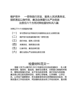 (12篇)维护党中央权威和集中统一领导践行宗旨、服务人民求真务实、狠抓落实以身作则、廉洁自律履行从严治党政治责任六个方面对照检查材料