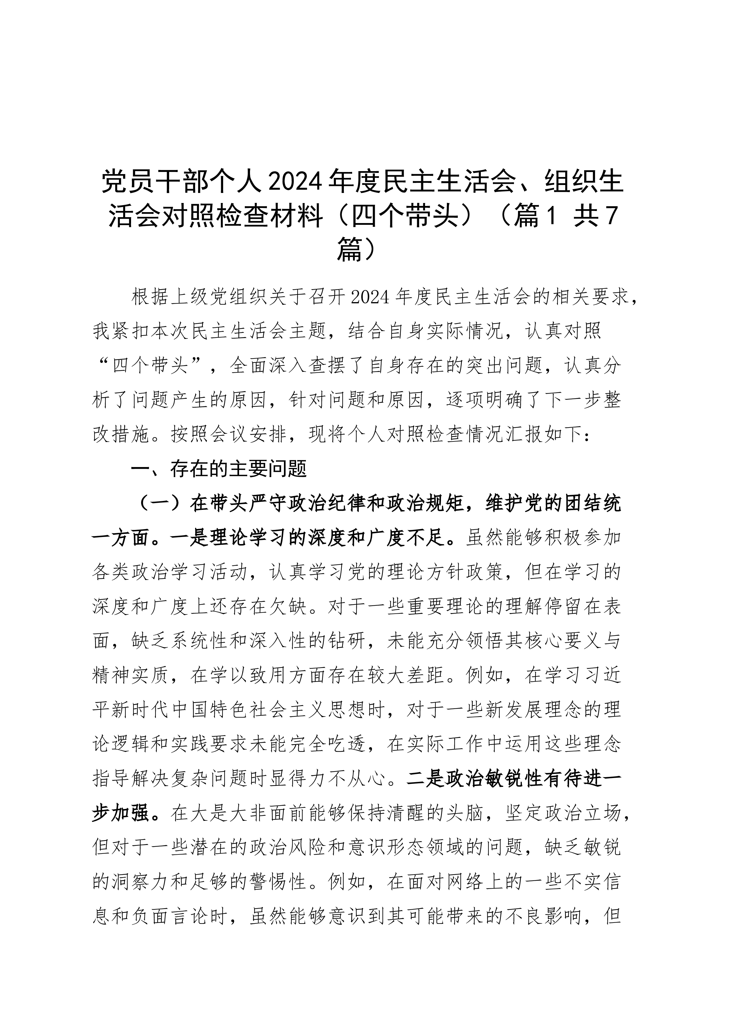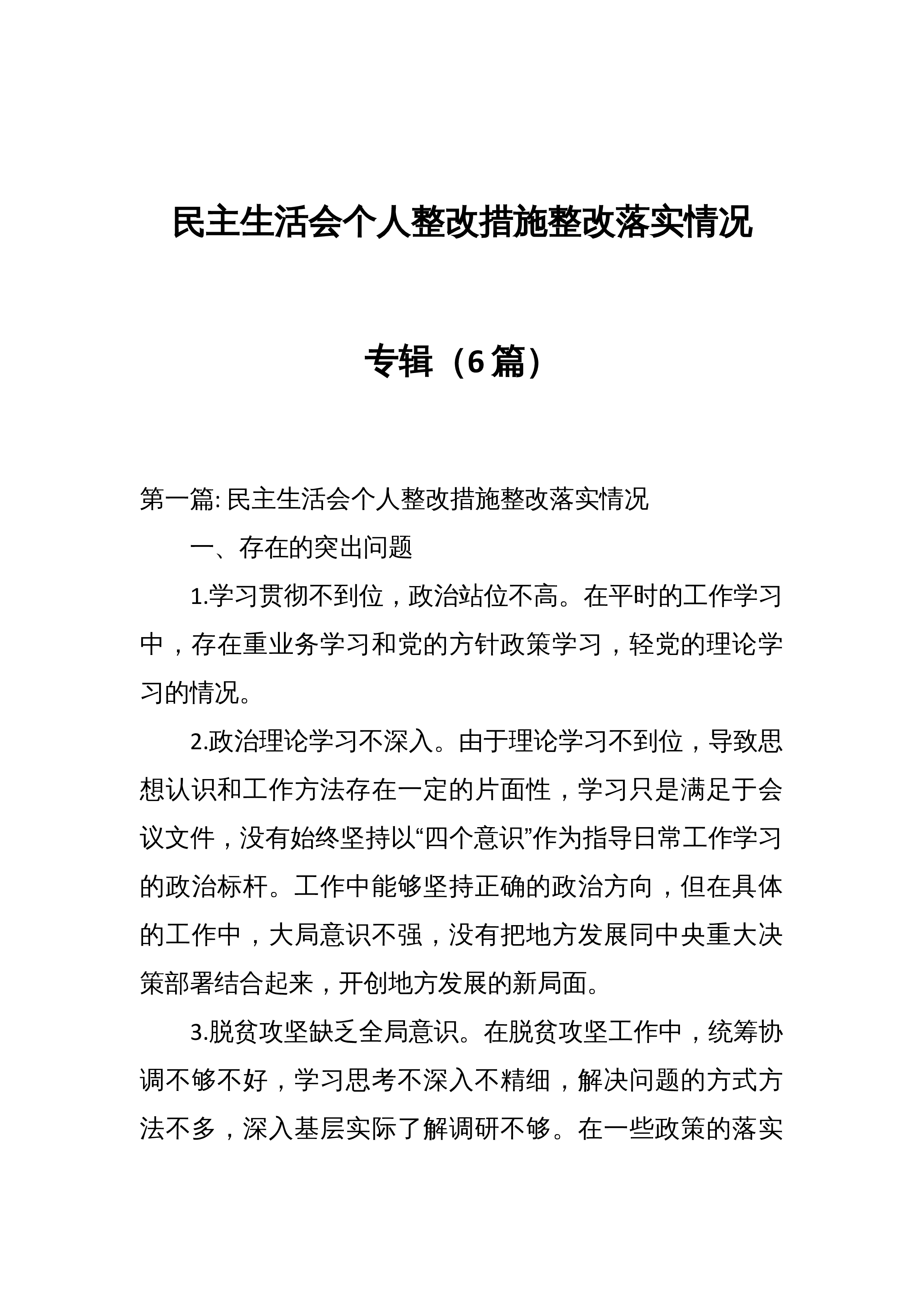 (3篇)自然资源局局长巡察整改民主生活会个人对照检查材料