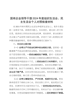 国有企业领导干部2024年度组织生活会、民主生活会个人对照检查材料(四个带头,纪律规矩团结统一、党性纪律作风、清正廉洁、从严治党,检视剖析,发言提纲公司)20250305