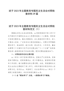 (39篇班子对照检查)班子2023年主题教育专题民主生活会、组织生活会对照检查材料范文(查摆检视剖析清单,发言提纲,组织,六个方面自查精选汇编)