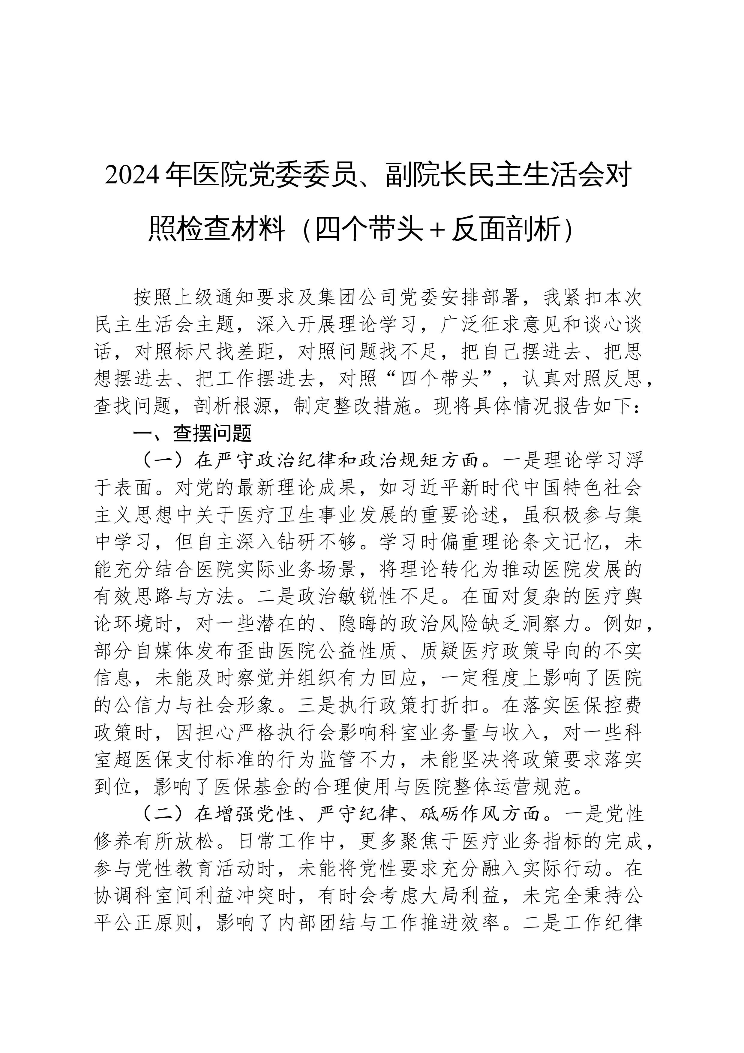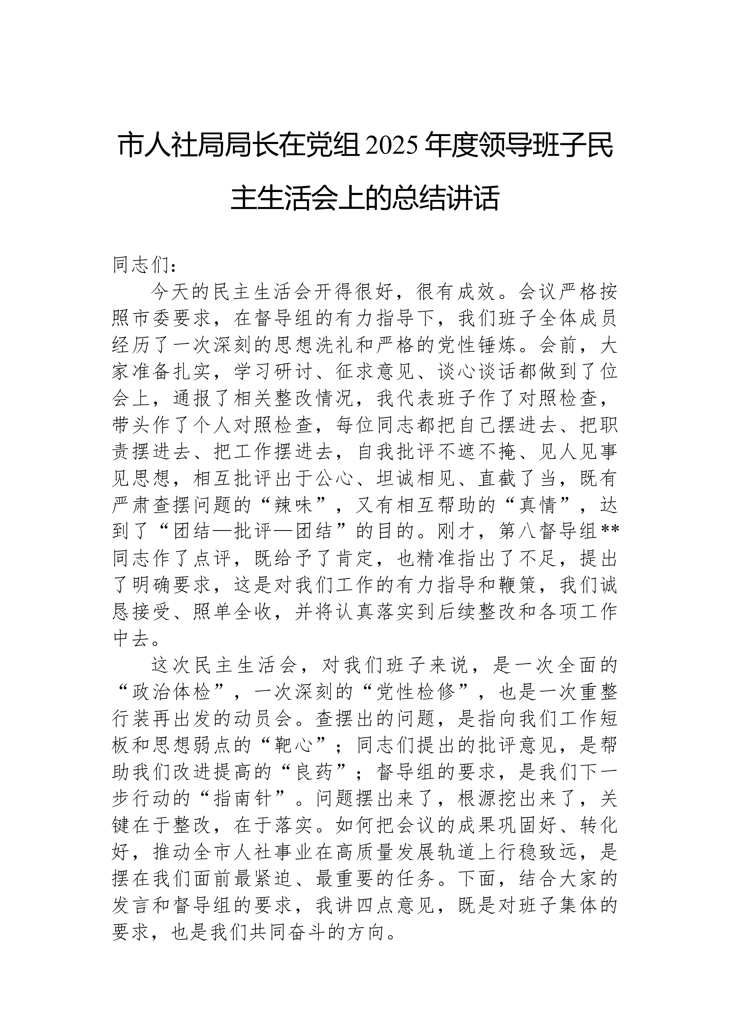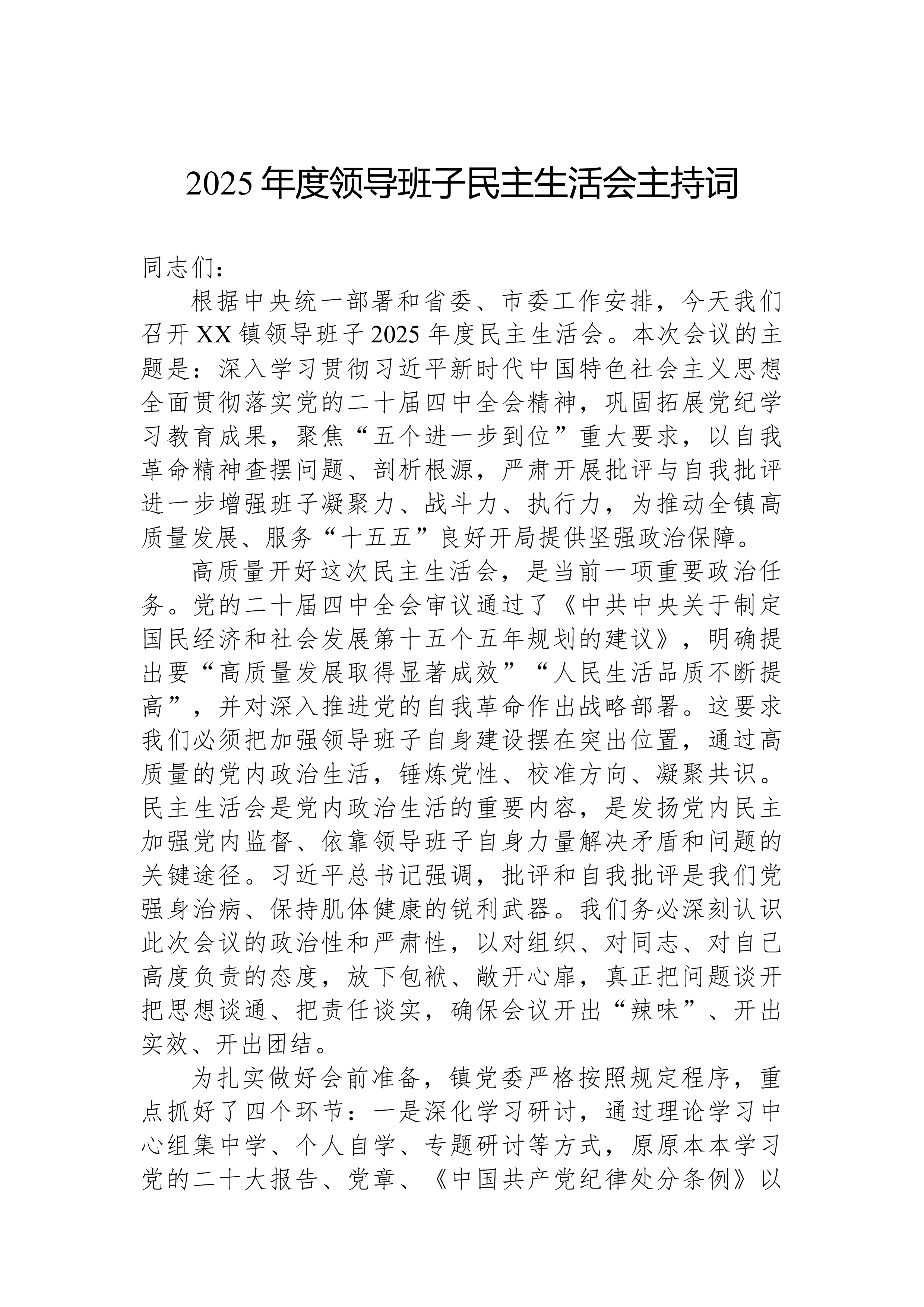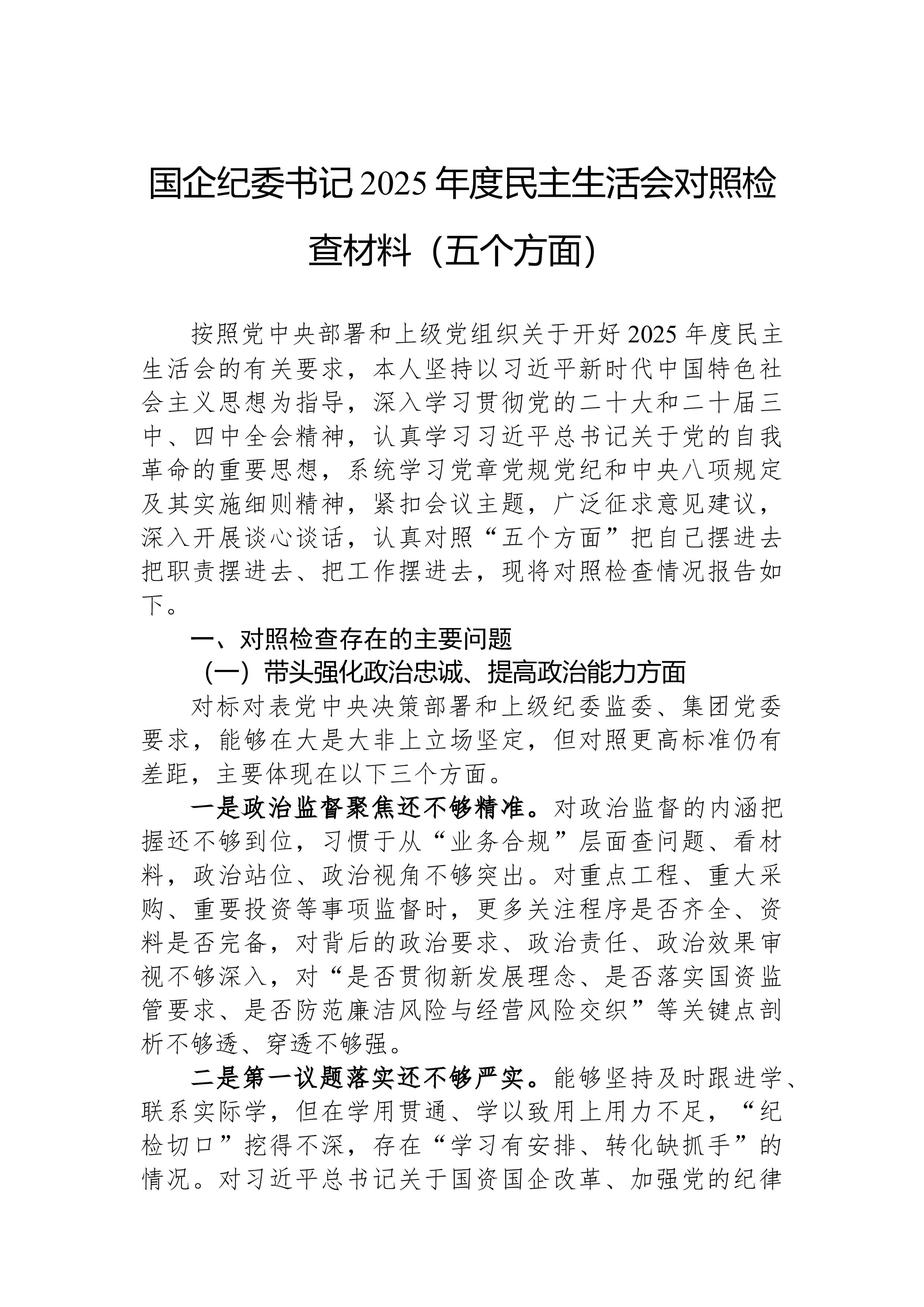 XX县科技局领导班子2025年度民主生活会对照检查材料根据县委关于召开2025年度民主生活会的统一部署,XX县科技局领导班子紧扣“深入学习贯彻习近平新时代中国特色社会主义思想,全面贯彻落实党的二十届三中、四中全会精神,深入贯彻落实习近平总书记重要讲话和重要指示批示精神,以打攻坚战、持久战的决心和恒心,锲而不舍落实中央八项规定精神,推进作风建设常态化长效化,以优良作风凝心聚力、真抓实干,聚焦高质量发展首要任务,扎实推进中国式现代化,为实现‘十五五’良好开局奠定坚实基础”这一主题,在深入开展学习研讨、广泛征求意见建议、坦诚进行谈心谈话的基础上,刀刃向内、揭短亮丑,深入查摆了存在的突出问题,深刻剖析了问题产生的根源,并明确了今后的努力方向和整改措施。现将对照检查情况报告如下。一、存在的问题班子成员...