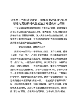 公务员工作推进会发言深化分类改革强化科学管理为贯彻新时代党的治方略提供有力保障