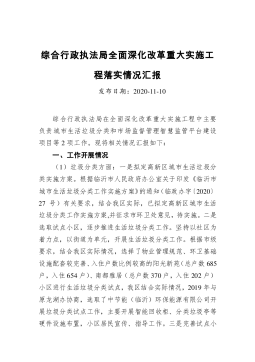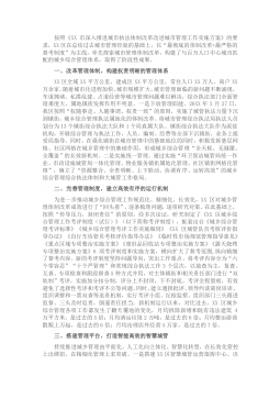按照《XX市深入推进城市执法体制改革改进城市管理工作实施方案》的要求,XX区在总结过去城市管理经验的基础上,以“最彻底的体制改革+最严格的督考制度”为主线,率先探索城市管理体制改革,构建了与百万人口中心城市匹配的城乡综合管理体系,取得了阶段性成果。一、改革管理体制,构建权责明晰的管理体系XX区全域XX平方公里,建成区XX平方公里,常住人口XX万人,商户XX万余家。随着城市化进程加快,城市规模扩大,城市管理面临的新问题不断涌现,车道拥堵、私搭乱建、占道经营等城市管理问题难以解决,综合执法部门全面管理难度大,属地镇街发挥作用不明显。一是下放管理职能。20XX年X月27日,我区按照“权随事走、人随事...