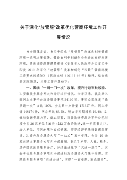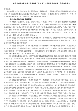 城市管理综合执局关于上报深化“放管服”改革优化营商环境工作的自查报告县司法局:为切实将依法行政法治政府建设工作落到实处,根据《中共XX县县委全面依法治县委员会办公室关于印发〈XX县法治政府建设示范创建活动任务风解表〉的通知》(X依法治县办发〔20XX〕6号)精神,对我局对照任务风解表进行了自查自评,现将就自查情况汇报如下。一、依法行政法治政府建设基本情况(一)体制改革进展情况。县委、县政府于20XX年2月2日印发了《XX县深入推进城市执法体制改革加强和改进城市管理工作实施方案》,县编办印发了《XX县城市管理综合执法局主要职责内设机构和人员编制规定》将“XX县城市管理行政执法局”更名为“XX县城...