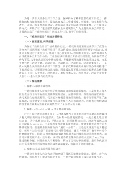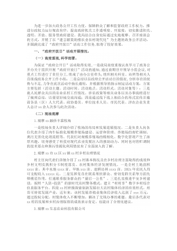 为进一步加大政务公开工作力度,保障群众了解和监督政府工作权力,推进行政权力运行规范有序,提高政府机关工作透明度、开放度,切实推进阳光、透明、开放、服务型政府建设。我局结合自身实际通过实地观摩、召开座谈会的方式,开展了以“建言献策助推农业农村现代化”为主题的政务公开活动,并圆满完成了“政府开放日”活动工作任务,取得了较好效果。一、“政府开放日”活动开展情况。(一)高度重视,科学部署。为保证“政府公开日”活动取得实效,一是我局高度重视认真学习了政务公开办关于组织开展“政府开放日”活动的通知,通过前期召开领导小组会议,对重点工作进行了责任分工,组成了由办公室牵头,组织相关科室、站所等相关人员组成政务...