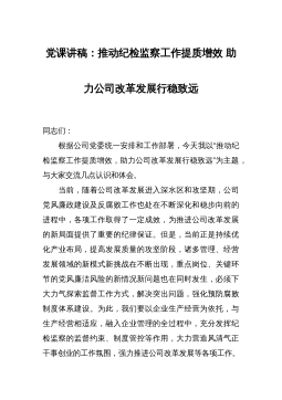 党课讲稿:推动纪检监察工作提质增效 助力公司改革发展行稳致远