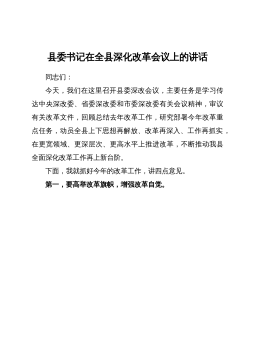 在“改革创新攻坚克难”先进典型表扬暨2023年重点工作动员大会上的讲话同志们:今天这次会议是春节假期过后,我们召开的第一个全县规模的大会,既是表扬先进、激励斗志的大会,也是提振精神、全面动员的大会,目的就是要大力弘扬新时代**精神,进一步改革创新、攻坚克难,只争朝夕、大干快上,奋力开创高质量发展新局面。刚才,我们隆重表扬了“改革创新、攻坚克难”先进集体、先进个人和优秀企业家,他们是全县各行各业、各条战线上的优秀代表。我们聆听了各个专班奋战一线、拼搏进取的先进事迹,这是对“奔跑者”的颂扬,对“奋斗者”的褒奖,对“贡献者”的赞誉。沧海横流,方显英雄本色,他们敢啃“硬骨头”,知难而进,创新路子,有效...