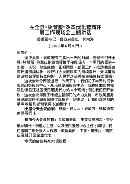 黔南州委秘书长文永生(2020年6月23日,根据录音整理)同志们:受吴胜华州长的委托,今天我们召开全州推进生活垃圾分类治理、工程建设项目审批制度改革和老旧小区改造工作电视电话会议,主要任务是贯彻落实全国“两会”精神,落实中央、省、州的各项决策部署,特别是学习贯彻习近平总书记在“两会”期间重要讲话精神,全力做好“六稳”工作,落实“六保”任务,总结我州生活垃圾分类、工程建设项目审批制度改革和老旧小区改造工作情况,安排部署下步工作。刚才,我们传达学习了胜华州长对全州生活垃圾分类处理、工程建设项目审批制度改革、老旧小区改造的批示精神,昌远同志通报了当前全州生活垃圾分类、工程建设项目审批制度改革、老旧小...