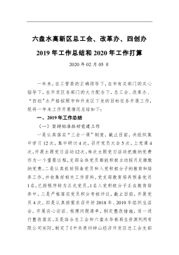 六盘水高新区总工会、改革办、四创办2019年工作总结和2020年工作打算