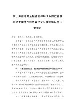 关于深化地方金融监管体制改革防范金融风险工作情况报告审议意见落实情况的反馈报告