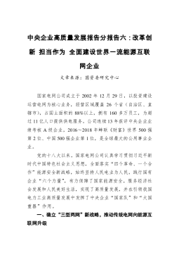 中央企业高质量发展报告分报告六:改革创新 担当作为 全面建设世界一流能源互联网企业