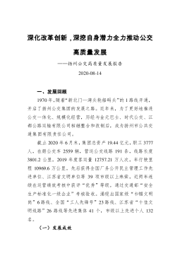 深化改革创新,深挖自身潜力全力推动公交高质量发展——扬州公交高质量发展报告