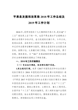 平果县发展和改革局2018年工作总结及2019年工作计划