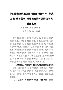 中央企业高质量发展报告分报告十一:聚焦主业 改革创新 推进国有资本投资公司高质量发展