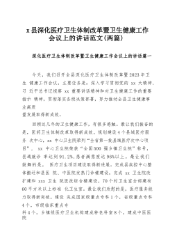 x县深化医疗卫生体制改革暨卫生健康工作会议上的讲话范文(两篇)