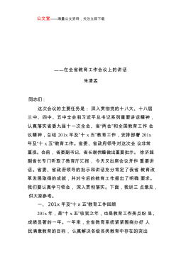公文堂——海量公文资料,关注立即下载——在全省教育工作会议上的讲话朱清孟同志们:这次会议的主要任务是:深入贯彻党的十八大、十八届三中、四中、五中全会和习近平总书记系列重要讲话精神,认真落实省委九届十一次全会、省“两会”和全国教育工作会议精神,总结201x年及“十x五”教育工作,安排部署201x年及“十x五”教育工作。省委、省政府领导对这次会议非常重视。会前,省委副书记、省长谢伏瞻做出重要批示。徐济超副省长专门听取了教育厅汇报,今天又出席会议并作重要讲话。省委、省政府领导的批示和讲话充分肯定了我省教育改革发展取得的成就,并对今后的教育工作提出了明确要求。我们要认真学习领会,深入贯彻落实。下面,我...